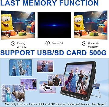 - Last Memory & Sync TV: The last memory function of portable dvd player with large screen that automatically resumes playback from where you last stopped, you’ll never have to worry about starting from scratch again. And easily sync with your TV for a larger screen and enjoy more immersive viewing experience.