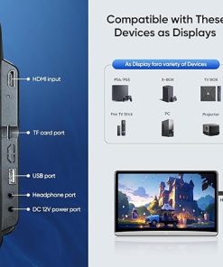 - Multiple Ports Compatible and Built-in Speakers: This adjustable car tv has both HDMI input ports,you can use HDMI cables to connect 2 screens.And they can play the same movie at the same time. The HDMI input function can be connected to Computer, tv box ,Xbox , PS4 ,PS5 and other devices as display.This portable back seat TV has built-in speakers, you can also use FM transmitter to transmit audio to car speakers. In addition to this, Bluetooth headsets or wired headsets can also be used