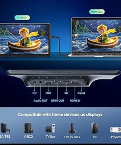 - Multiple ports compatible: This car table tv has HDMI input and HDMI output ports,you can use HDMI cables to connect 2 screens.Two screens will play the same movie at the same time. This android tv can be connected to Computer, tv box ,Xbox , PS4 ,PS5 and other devices as display.It can also play videos and audios stored in SD card, USB driver