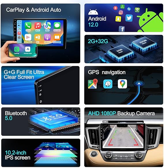 - 【Powerful Specs】This 10.2-inch IPS touchscreen Android 12 radio, powered by 2GB RAM and 32GB ROM, offers a seamless and responsive experience for your Toyota RAV4. This 100% plug-and-play unit requires no additional accessories, making installation easy. Enjoy a smooth upgrade to your vehicle’s infotainment system.