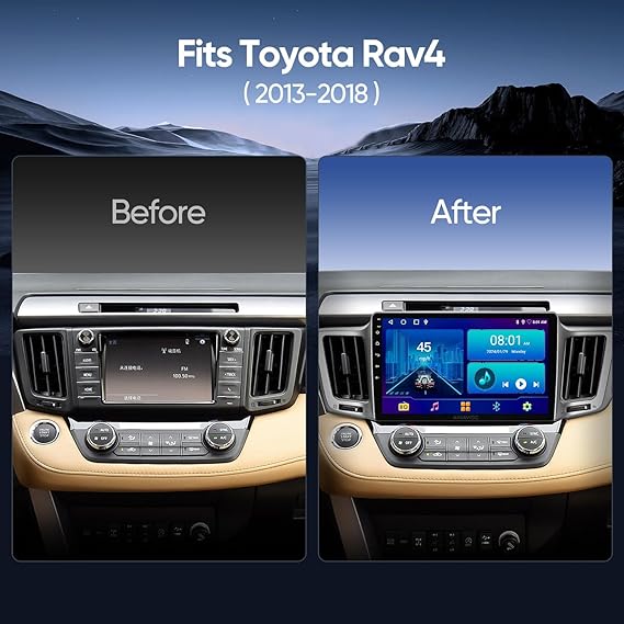 - 【Applicable Car Models】For This radio is designed to fit the original factory style of Toyota RAV4 models from 2013 to 2018. No dashboard modifications are required for installation. To ensure compatibility, please verify your vehicle’s year, dimensions, and center console shape before purchasing. If you have any questions, feel free to contact us with a message or photo.