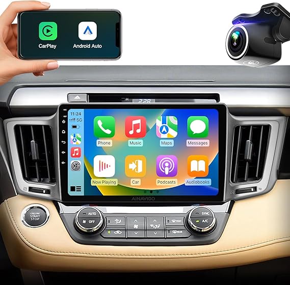 Dash Camera-AINAVIGO-5G WiFi Car Stereo for Toyota RAV4 2013 2014 2015 2016 2017 2018-10.2 Inch IPS HD Touch Screen Car Radio Wireless CarPlay Android Auto