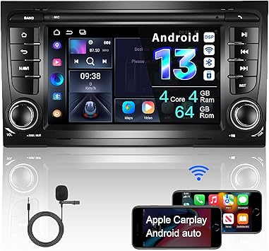 Dash Camera-AMASE AUDIO-AMASE AUDIO Ultra-Thin Android 13 Car Stereo for Audi A4 S4 RS4- Wireless Carplay Android Auto