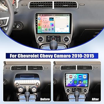 - 【Android 13 Car Stereo for Chevrolet Chevy Camaro】: The apple carplay car stereo fits for Chevrolet Chevy Camaro 2010 2011 2012 2013 2014 2015. Android 13 system, 9” Capacitive touch screen, screen size is 228mm*218mm*131mm,8 core CPU,4G RAM+64G ROM, running smoothly in colleges and universities.A variety of EQ sound effects scene selection.Capacitive touch screen,1024*600 high resolution, Support 1080p video, will provide you the Excellent experience in the car