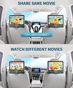 - 【HDMI INPUT & AV IN/OUT】Our headrest DVD player can sync up to 1080P video from mobile phones, computers, Raspberry Pi, Xbox or kindle fire etc.(Please confirm whether your mobile phone supports HDMI function before ordering). With AV In/Out function, you can connect it to a TV to enjoy movies on a large screen with your families.