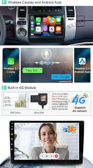 - 【Wireless/Wired CarPlay & Android auto】Wireless Carplay and Android Auto connected with Bluetooth,click ZLink icon to start CarPlay or Android Auto function or back to main page, Wired contected way with the 6 pin USB cable,very convenient to operate,free your hands,keep you stay focused and enjoy entertained while driving