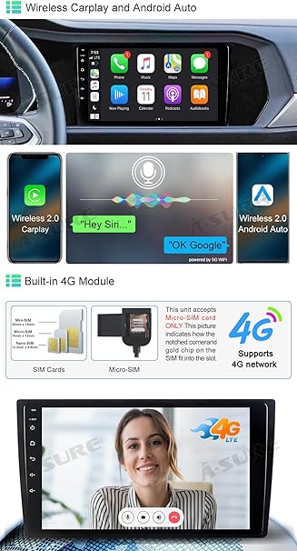 - 【Wireless/Wired CarPlay & Android auto】Wireless Carplay and Android Auto connected with Bluetooth,click ZLink icon to start CarPlay or Android Auto function or back to main page, Wired contected way with the 6 pin USB cable,very convenient to operate,free your hands,keep you stay focused and enjoy entertained while driving