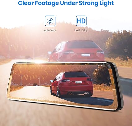 - 【Dual 1080P Rear View Mirror Camera】Rear view mirror backup camera with FHD 1080P offers a super clear and smooth video experience, enabling you to easily read important details like road signs and vehicle number plates. Rear view mirror dash cam with 9.35″ Stream media touch screen displays a wider corner view than a traditional rear view mirror, greatly reducing the blind spots to improve driving & parking safe