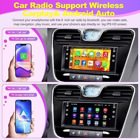 - 【Effortless Connectivity with CarPlay & Android Auto】: This Android 12 car stereo supports both wired and wireless Apple CarPlay and Android Auto connections. Use the USB cable for a reliable wired connection or connect wirelessly via Bluetooth for easy access to your phone’s apps. Activate voice assistants like Siri or Google Assistant to manage GPS navigation, calls, messages, music, and other functions hands-free, ensuring a safer driving experience.