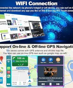 - 【GPS Navigation & WIFI】The GPS Navigation Head Unit built-in GPS module and external GPS antenna for online or offline map navigation. Offline map data preloaded, ready to use after installation,includes voice and visual turn-by- directions 11 million+ POI library, 2D & 3D routes, fuel tracker. this car radio also supports WIFI hotspot connection, you can easily access and download online navigation APPs, Instagram, Facebook, TikTok, etc on Play store.