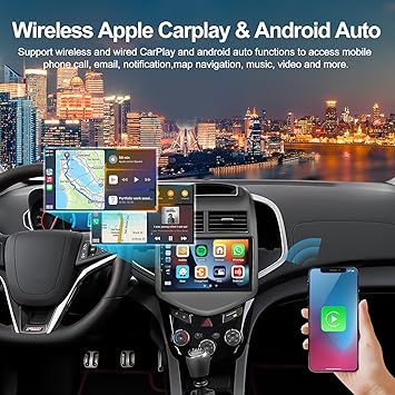 Dash Camera-CAMECHO-2G+32G Car Stereo Radio with Wireless CarPlay Android Auto for Chevrolet Chevy Sonic 2012-2015 Android 13 Radio 9″ Touch Screen Bluetooth Car Radio with GPS Navigation WiFi Mirror Link Backup Camera