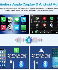 - 【Wireless Apple Carplay & Android Auto】The Apple Carplay and android auto function allows you to perform tasks on your smartphone while driving and displays them on the large screen of this car radio. You can access navigation, make phone calls, send and receive texts, and listen to your preferred music. By using Siri/Google Voice Control, you have the ability to manipulate your phone hands-free, making it a smarter, safer, and more enjoyable way of using your device while driving
