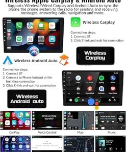 - 【Compatible with Wireless Carplay & Android Auto】In dash GPS car stereo is compatible with wired/wireless carplay and android auto, users can make voice control to access car stereo and use map navigation, make phone call, play music and send, receive messages etc. This android radio supports IOS 15.3 and below, Android 12 and below.(Note: Huawei mobile phones are not supported, Samsung phones do not support wireless Android auto)