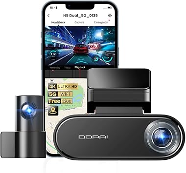 - 【True 4K+1080P Dual Dash Cam】The DDPAI N5 Dual dashcam lens consists of 7 groups of high-quality optical lenses, offering 3840P*2160@25fps and 1080P front and back high-definition recording (with audio capture).Providing smooth, cinematic video evidence for accident disputes and insurance claims. The perfect dash camera for family vehicles, new drivers, and Uber/Lyft drivers.