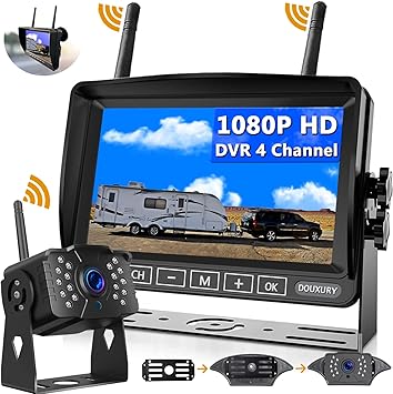 Dash Camera-DOUXURY-Wireless Backup Camera- DOUXURY IP69 Waterproof 170° Wide View Angle HD 1080P Rear View Camera + HD LCD 7″ Monitor