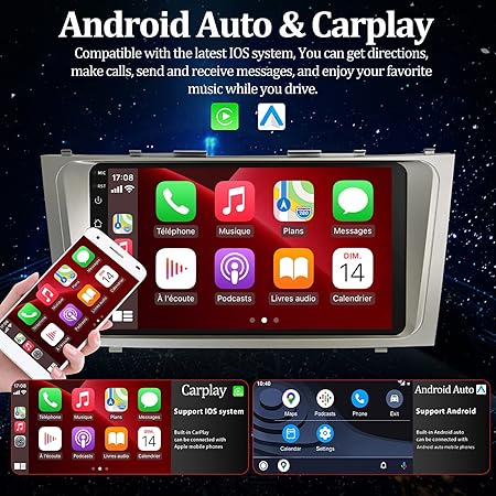 - 【Carplay&Android Auto】Support wireless and wired connect your cell phone to the camry radio, compatible with the latest IOS system. With voice control, you can get directions, make calls, send and receive messages, and enjoy your favorite music while driving