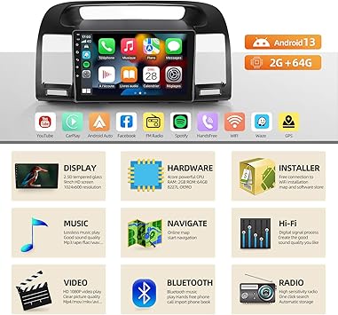 - 【Latest Android 13 System】The Android car radio for Toyota Camry 2000-2006, plug & play and easy to install. Android 13 operating system, 2GB RAM & 64GB ROM, low power consumption, more faster and stable