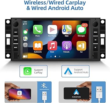 - 【Wireless Apple Carplay & Android Auto】You can use wireless/wired carplay function of this Android car radio head unit to navigative, access mobile phone address book, mail, notification, listen to music, etc via Bluetooth or USB cable, and wake up voice assistant siri to use voice control.It also support wired Android Auto,just connect via USB cable.