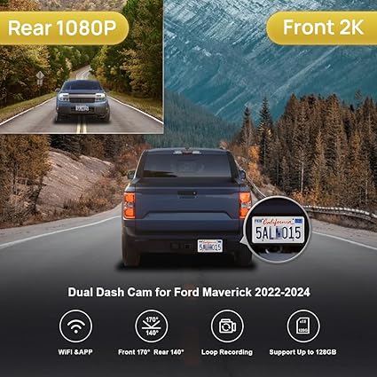 - 【Suitable for Ford Maverick 2022-2024】Fitcamx dash cam fits perfectly behind the rear view mirror like OEM. No wires or visible, No cable routing necessary, you don’t even notice it’s there after installed. Very low key. Specially developed for 2022-2024 Ford Maverick vehicle styles that has RAIN SENSOR.