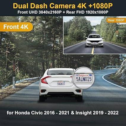 Dash Camera-FITCAMX-Fitcamx 4K Dual Dash Cam Adapts for Honda Civic 2016 2017 2018 2019 2020 2021 Sport LX EX Touring Si & Insight 2019-2022 (HD2-0211)- OEM Style