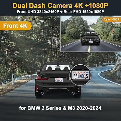 Dash Camera-FITCAMX-Fitcamx 4K Dual Dash Cam Compatible with BMW 3 Series M3 2020 2021 2022 2023 2024 CS M340i 330i 330e xDrive (HD2-6308)- OEM Look