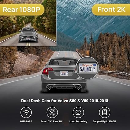 Dash Camera-FITCAMX-Fitcamx Front 2K+Rear 1080P Dash Cam Adapts for Volvo S60 2010-2018 T5 (2nd Gen)- OEM Style