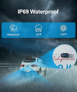 - Feature-rich 5″ Monitor: The 5-inch IPS monitor is made of high-temperature-resistant and heat-dissipating ABS+PC raw material for stronger quality and longer service life. With basic practical functions, DIY guide line, brightness adjustment, image flip function, dual split screen, it can be adjusted to the best viewing mode according to the installation location and ambient light. You can choose to mount the monitor on dashboard or windshield with the included Suction Cup Mount