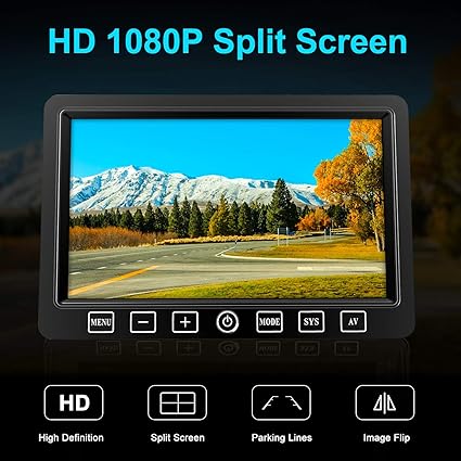 - ☀️1080P Dual/Quad Split Screen Monitor: The 1080P Image Processor provides 1920×1080 resolution images to allow you see more clearly and details. Split screen monitor can show more than one cameras’ images at the same time, making your driving and reversing more confident and safer.(It supports up to 4 cameras, please ask us for extra camera if you need.)