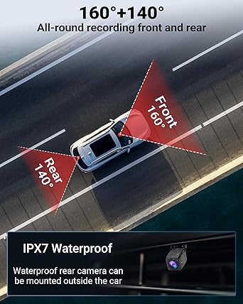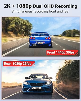 - 【Front and Rear HD Dash Cam】Fulvdi F710 dual dash cam can record video in front UHD 2K (2560*1440P@30fps-160° wide angle) and rear FHD 1080P (1920*1080P@30fps-140° wide angle) resolution, clearly capturing number plates and road signs. You can switch to the front view in 2K or 1080P. A front dash cam can be used on its own, capturing more important details such as road signs and number plates day and night.
