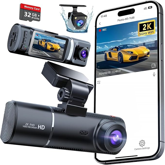 Dash Camera-GILIKVHOM-3 Channel 5GHz WiFi FHD Dash Cam- 2K+1080P+1080P Dash Cam Front and Rear/Inside for Cars with Night Vision