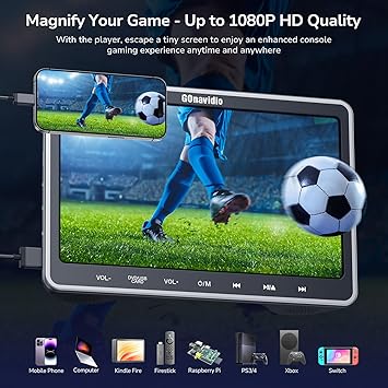 - Upgraded HDMI Input: You can watch up to 1080p video on the DVD player for car by phone or firestick connection via HDMI input function. Escape a tiny screen to enjoy an enhanced console game experience with PS3/4, Xbox, Switch, or Raspberry PI connection