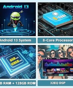 - 【Powerful Processor】 The Latest Android 13 system with powerful 8-core processor provide you with a smarter and more efficient services. 6G RAM ensures that the car radio runs smoothly, and 128G ROM allows you to download and install multiple apps that you like through the store, like Youtube, Soptify, Pandora, etc