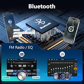 - Bluetooth and FM Radio Receiver: Quickly to pair it with your smartphone, built-in mic, hands free calling with clear sound quality and stable performance. The single din touchscreen car stereo supports FM radio, you can listen to real-time traffic, news broadcasts, weather forecasts etc.