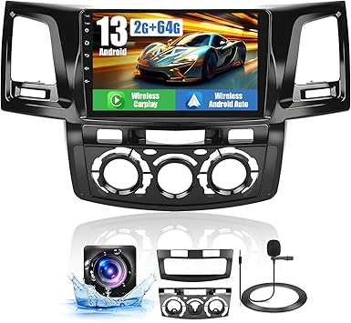 Dash Camera-Inefala-2+64G Stereo for Toyota Fortuner Hilux 2005 2006 2007 2008 2009 2010 2011 2012 2013 2014 CarPlay Car Stereo Android 13 9 Inch Touchscreen Android Auto Backup Camera GPS FM RDS EQ 28UI