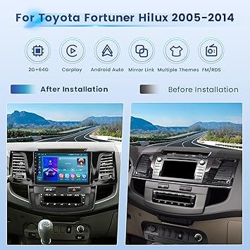 - Applicable Models & Years: This upgraded replacement dash kit is for toyota fortuner hilux 2005 2006 2007 2008 2009 2010 2011 2012 2013 2014 with Manual A/C and Auto A/C. The stereo comes with an in-dash head unit, wiring harness cables and frame panel. Supports most stock features – power amplifier, steering wheel controls and more. Please check if the power cable port on the detail page matches your original car before purchasing
