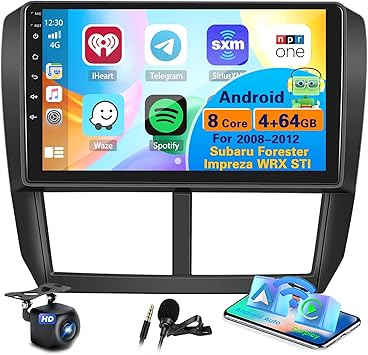 Dash Camera-Inefala-8-Core 4+64G Android 13 Car Stereo Upgrade Radio for Subaru Forester Impreza WRX STI 2008-2012- 9” HD Touch Screen with Wireless CarPlay & Android Auto