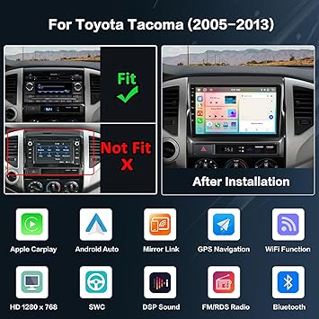 - Applicable Models & Years: This upgraded replacement dash kit is for toyota tacoma 2005 2006 2007 2008 2009 2010 2011 2012 2013. The stereo comes with an in-dash head unit, wiring harness cables and frame panel. Cable does NOT support the original car with JBL amplifier (Purchase If Needed). Please check if the power cable port on the detail page matches your original car before purchasing