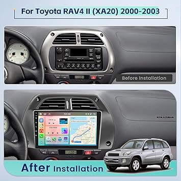 - Seamless Upgrade: This 8-core 4+64GB android car radio for toyota rav4 ii is designed specifically for toyota rav4 ii (xa20) 2000-2003, boasting strong compatibility and exceptional performance. Equipped with the latest Android 13 OS and 8-core CPU, featuring 4GB RAM and 64GB ROM, it runs smoothly and supports downloading popular apps like YouTube, Spotify, Pandora. For compatibility queries, feel free to consult us before making a purchase