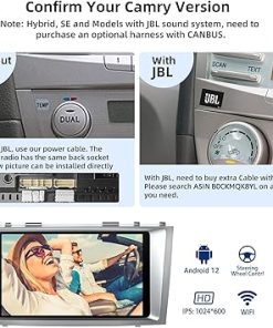 - 【Powerful hardware configuration】 The latest Android 13.0 operating system, powerful 4-core processor, 4GB RAM and 32GB ROM, enjoy fast boot and smooth running. Improve sound quality with equalizer, use DSP EQ to adjust the sound to render better results. This Android head unit with Bluetooth is fit for Toyọta Caṃry 2006 2007 2008 2009 2010 2011. (Note: If your car has original JBL audio system, you need to buy extra Plug and Play cable with Canbus, please search ASIN: B0CKMQK8YL.