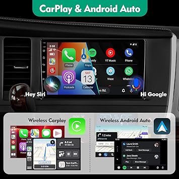 - 【CarPlay& Android Auto & MirrorLink】Wired CarPlay & wired Android Auto. Use the original USB data cable to connect the Apple or Android phone. Sync the phone APP with the car radio and run online navigation in CarPlay or Android Auto on the car stereo. Make hands-free calls, send/receive SMS, and listen to music/podcasts in CarPlay or Android Auto while you focus on driving. You can wake up Siri with your voice or with one touch.