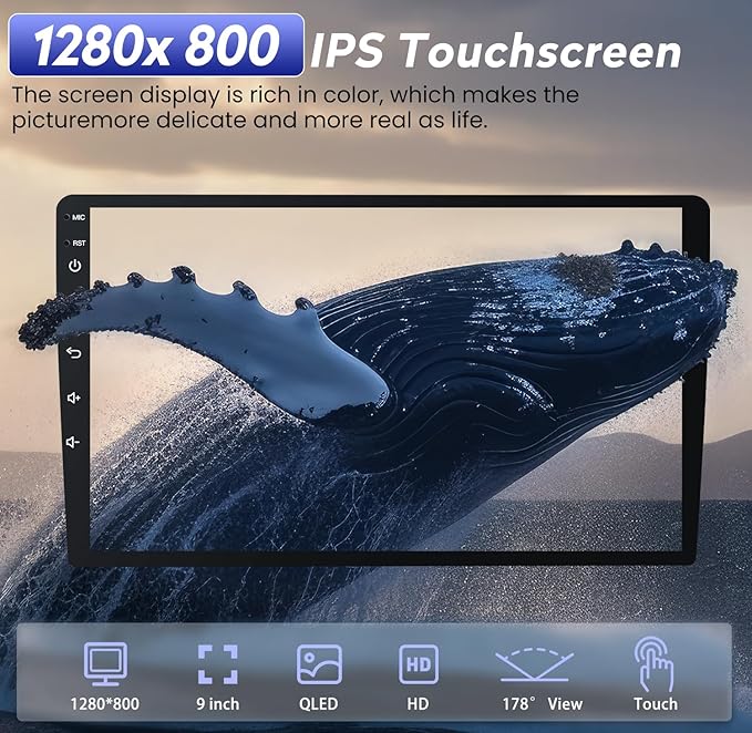 - Traversing the Realm of Screens: The 1280×800 IPS display offers crystal-clear visuals, vibrant colors, and wide viewing angles. Its responsive touchscreen ensures easy navigation of apps, settings, and media. The large screen is perfect for viewing navigation maps, multimedia controls, and camera feeds, providing a modern, intuitive interface. With IPS technology, enjoy accurate colors and a bright display that’s easy to see in any lighting condition, enhancing your in-car experience.