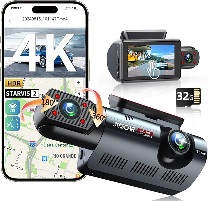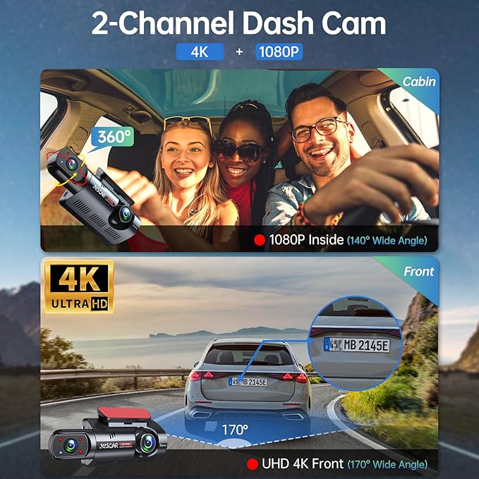 Dash Camera-Juscar-Smart 4K Dual Dash Cam with WiFi GPS- Voice Control