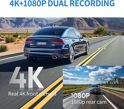 Dash Camera-KAWA-KAWA True 4K Dash Cam Front and Rear- Free 64GB Card