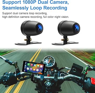 Dash Camera-LBW-LBW Premium Motorcycle DVR: Wireless Apple Carplay & Android Auto- Dual HD 1080P Cameras