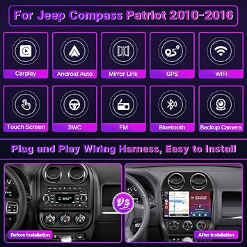 - 【Plug and Play Wiring Harness Radio 】: For Jeep patriot & Jeep compass 2010-2016 Radio includes the necessary accessories for installation. Complete accessories, no need to purchase additional accessories; The wiring harness has been adjusted and is plug and play; The user manual included in the accessories includes installation and usage instructions, which are easy to understand. If you have any questions, please click “sold by Nideo” and “ask a question” for technical support)
