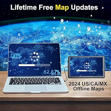 - Free Lifetime Map Updates: Plug and Play! The navigation system is preloaded with the 2024 latest North American maps, which include 101 regions in the United States, Canada, and Mexico. Free lifetime map updates, only one-time purchase, lifetime enjoyment. The map can be viewed in 2D/3D mode, and the units can be changed between miles/feet/yards and kilometers/meters.
