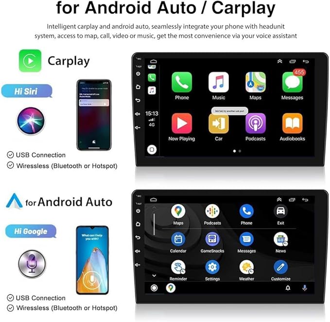 - 【Wireless & Wired Carplay】: wired or wireless Carplay in-vehicle system can closely integrate the user’s iOS device and iOS experience with the dashboard system. Users who use wireless Carplay can connect to the car system via Bluetooth to realize voice-controlled navigation, make calls, send and receive messages, and listen to music. It is only available for iPhone