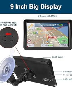 - [9-inch satellite navigation with sunshade] The 9-inch large touch screen responds quickly without delay. The natural color gives your eyes comfort. The uniquely designed sunshade can be used for seated navigation, which can effectively block sunlight during the day and avoid reflection at night. therefore, View routes and navigation easily without hands