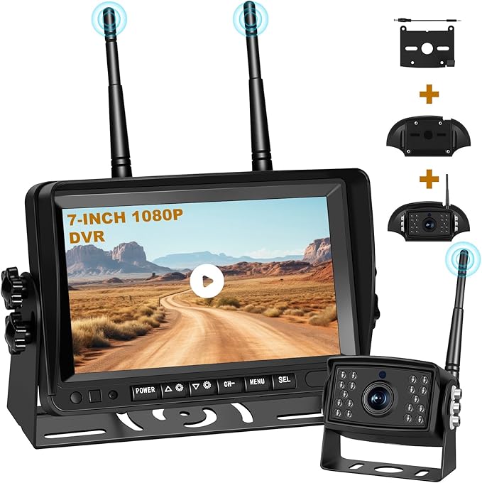 Dash Camera-Losuudy-7” Backup Camera Wireless for RV Truck Trailer- HD Monitor & 1080P Motorhome Back up Camera System