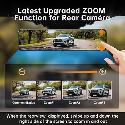 - [Enhanced Zoom Rearview Mirror] The traditional digital interior mirror has size and distance perception issues. Our Rearview Mirror Camera features a zoom function, making it effortless to gauge the distance of rear vehicles while driving. Say goodbye to the uneasiness of closely following cars